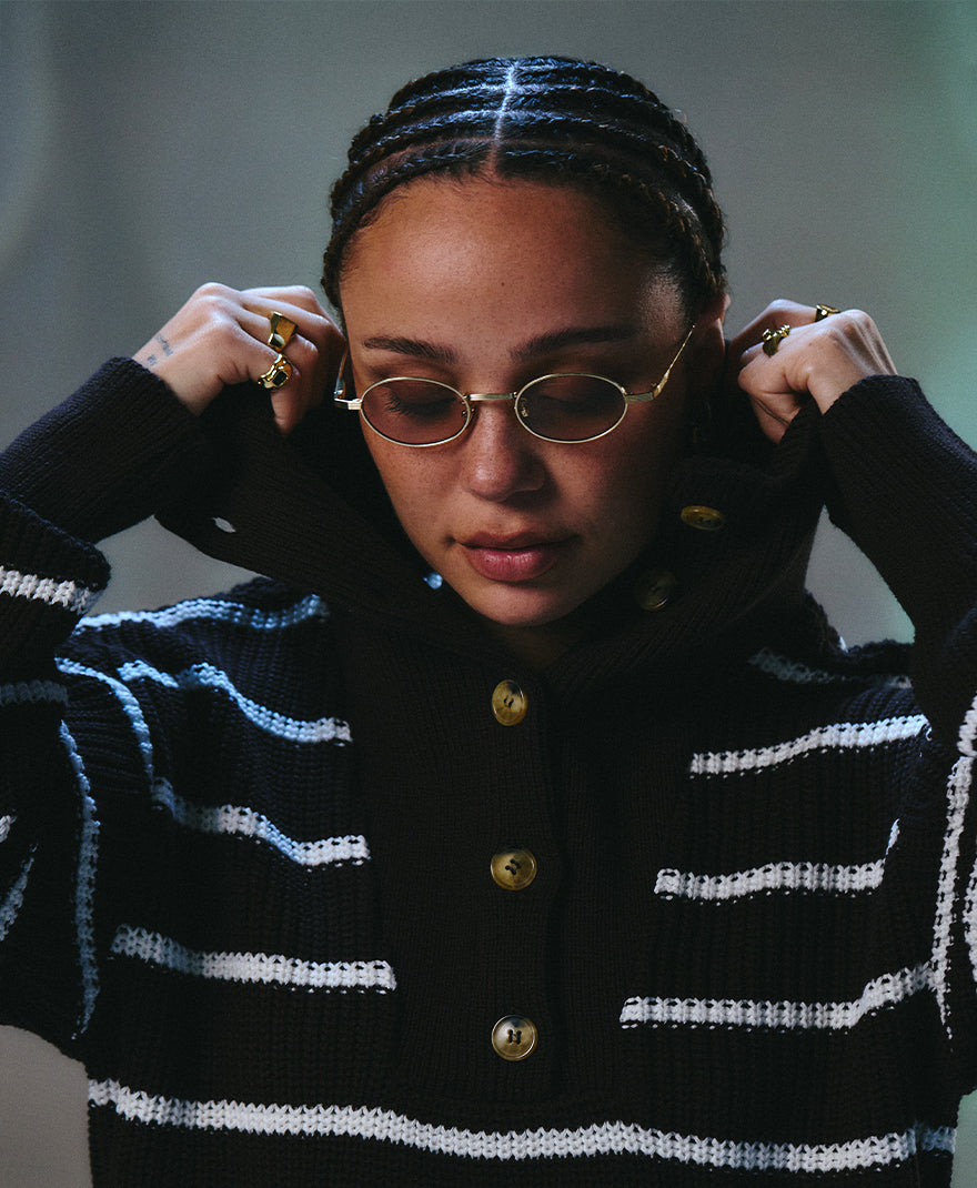 Um metal nada convencional. Cheio de detalhes que agregam ainda mais elegância à armação, é um acessório leve e clássico, com gravações nas ponteiras de acetato e plaquetas que garantem conforto para diferentes tipos de nariz. E por trás dessa simplicidade, mora uma intenção: Emmi é a frase curta que vale por um parágrafo. Minimalista, inteligente,  um selo de bom gosto.