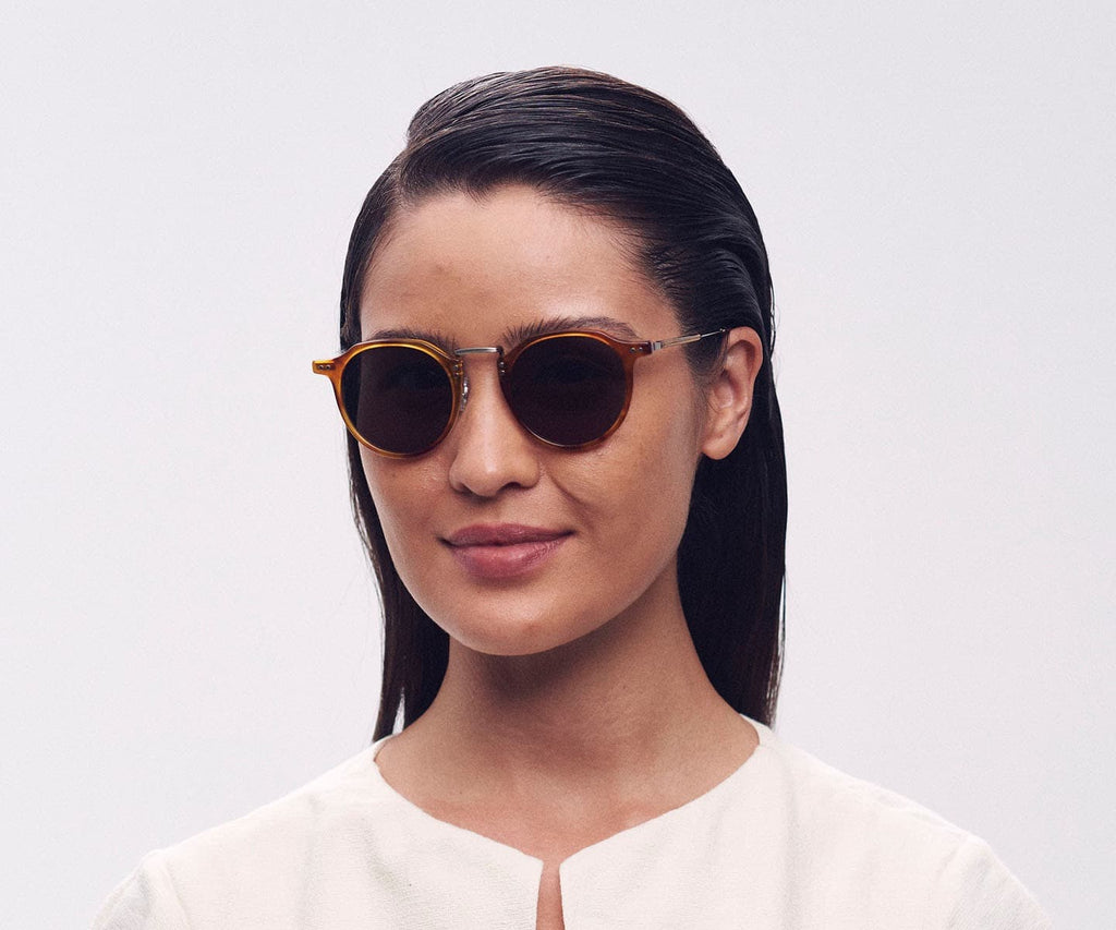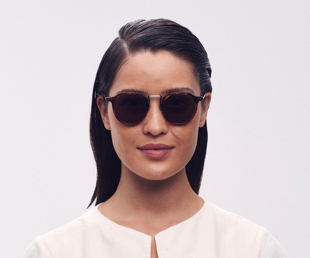 O Fine é um best seller tanto no sol quanto no grau. Na versão acetato + metal, a medida e formato do olho permanecem iguais ao modelo de acetato. A largura total da armação é ligeiramente maior por um alargamento da ponte (para acomodar melhor as plaquetas). Ele tem um tamanho médio e é feito de acetato de celulose e aço inoxidável