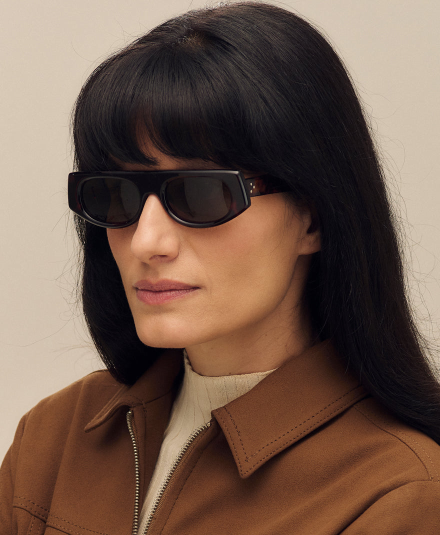 Willa, assim como Jet, é nossa releitura dos clássicos aviadores. Essa armação explora um formato mais inusitado, com a parte superior reta e formato mais retangular. De frente, mais bold, e de lado, mais leve, com o contraste perfeito entre o contemporâneo e o vintage. Como todos os produtos da linha Archt, conta com detalhes especiais como pinos laterais e gravações, e aro em cor especial na versão tortoise breu.